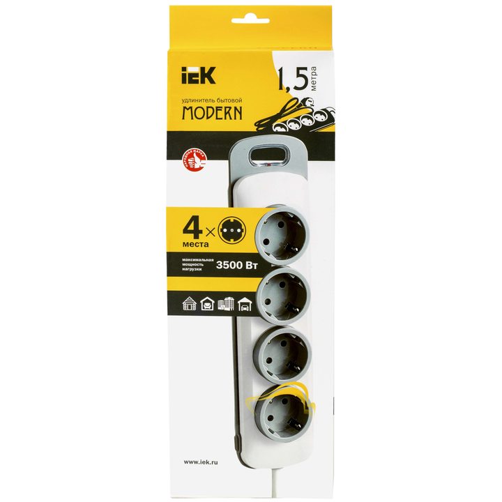 Удлинитель У04В 4 места 2P+PE/1,5м 3х1мм2 16А/250В MODERN IEK