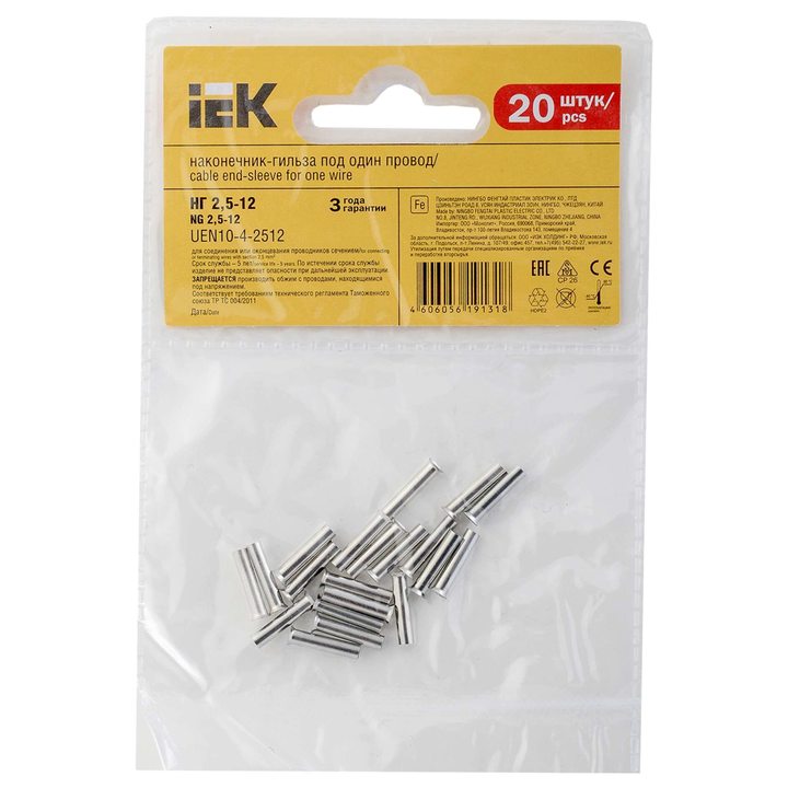 Наконечник-гильза НГ 2.5-12 без изол. (уп.20шт) ИЭК