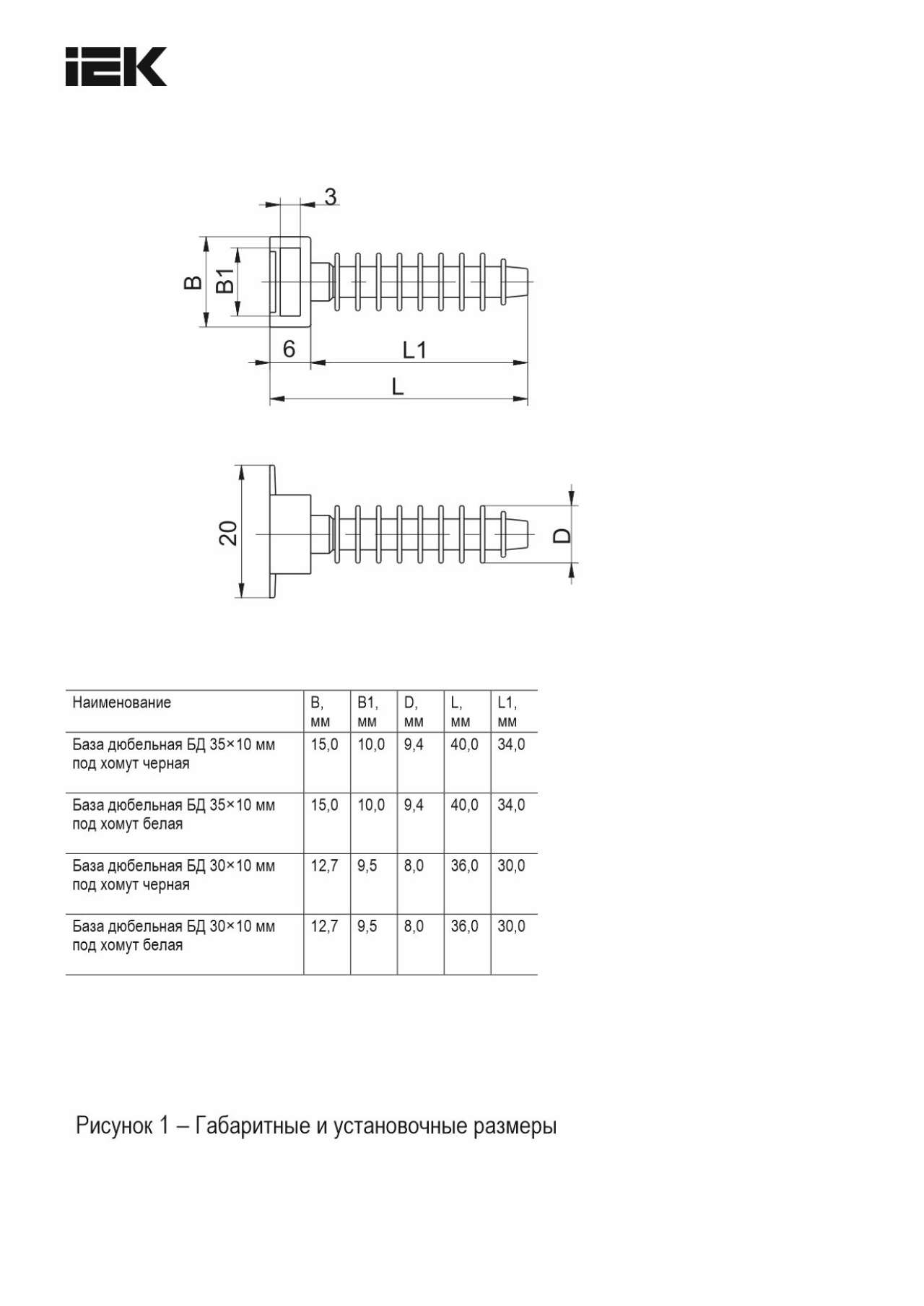 База дюбельная БД 35х10 под хомут черн. (уп.100шт) ИЭК