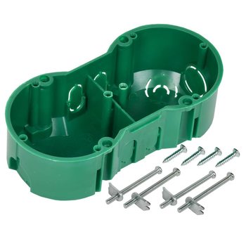 - Надежный и быстрый монтаж в сплошных кирпичных и бетонных стенах для установки электроустановочного оборудования.