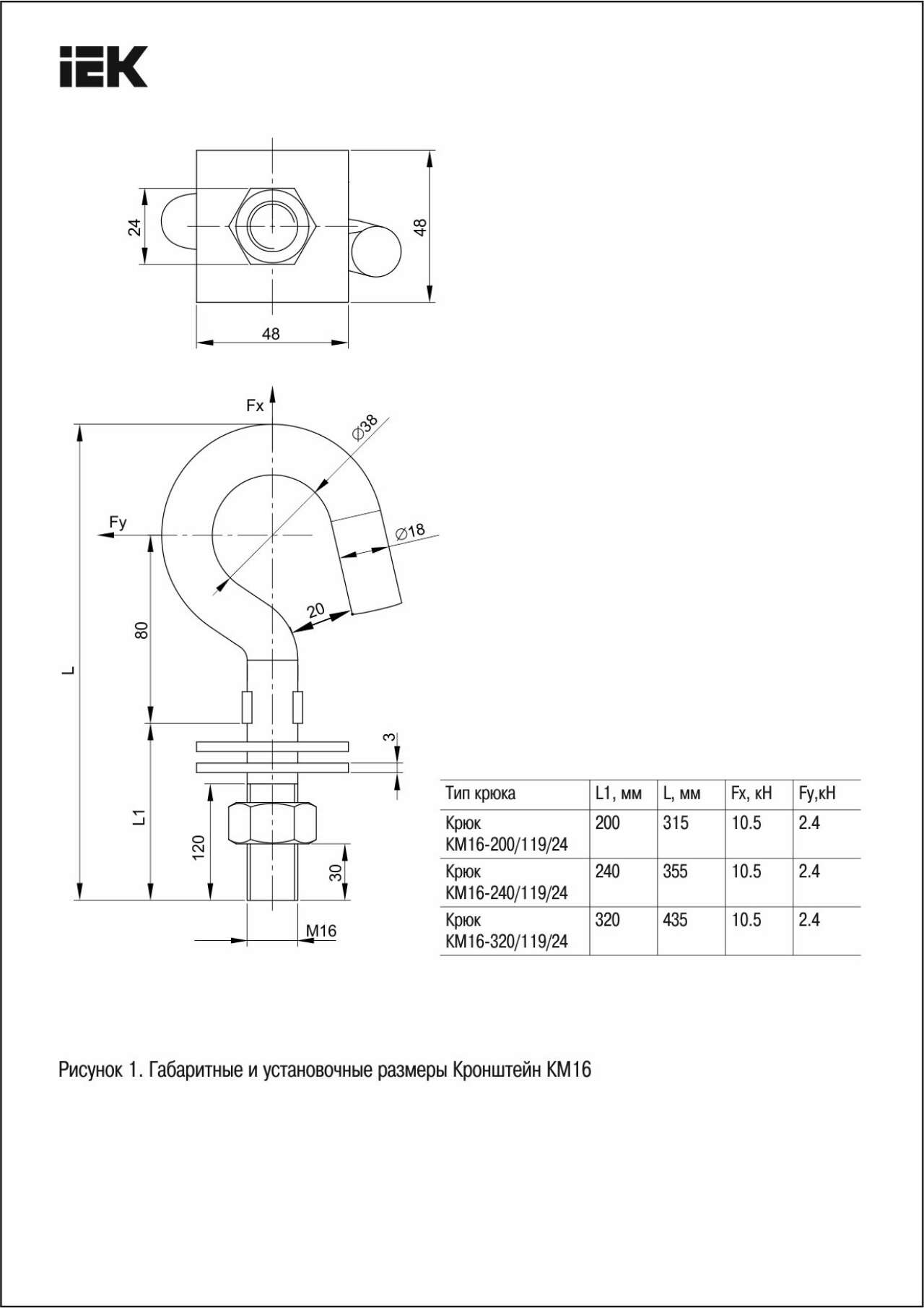 Крюк КМ16-200/119/24 (SOT21.16) ИЭК