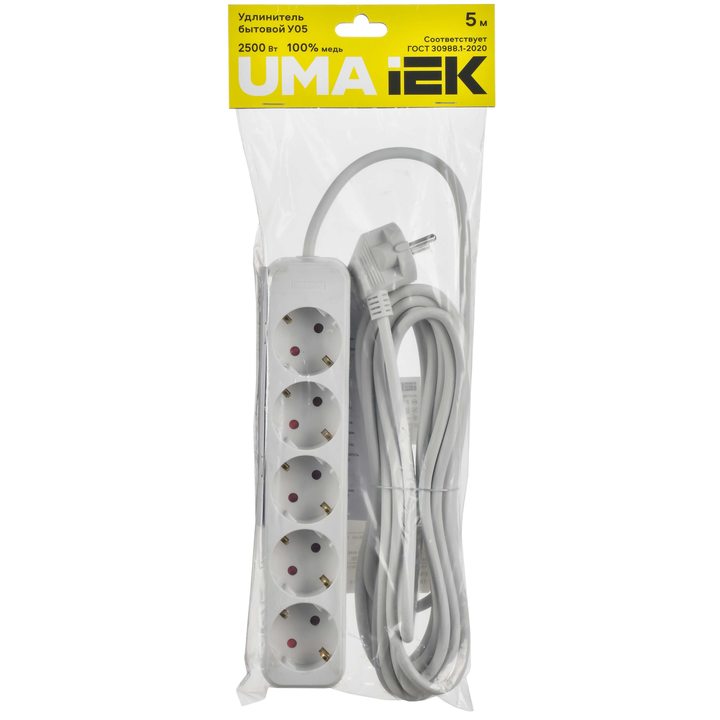 UMA Удлинитель У05 5 мест 2P+PE 5м 3х1мм2 10А белый IEK