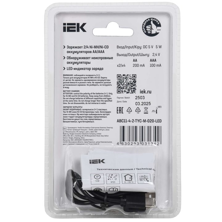 Устройство зарядное для 2-4 NiMH/CD аккумуляторов AA/AAA 200мА с LED индикатором IEK