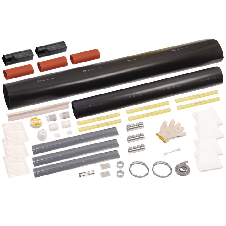 Комплект заземления оболочки и брони кабеля доступен для заказа с материалами под пайку или с пружинами постоянного давления, изготовленными из высококачественной нержавеющей стали с высоким содержанием хрома и никеля.