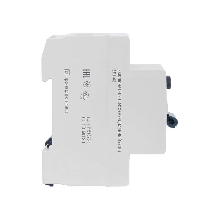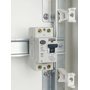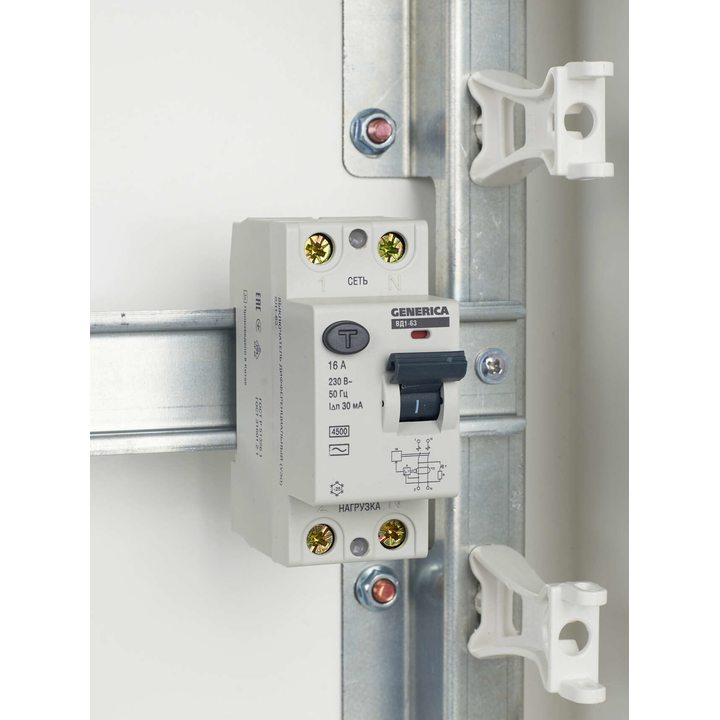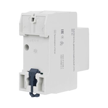 Защелка для крепления УЗО на монтажную рейку выполнена с возможностью фиксации блокирующего и свободного положений.