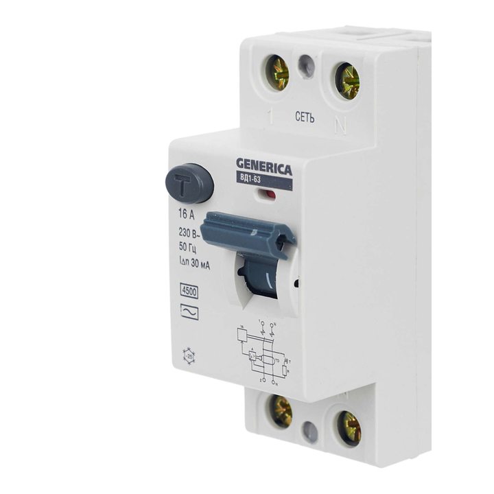 Выключатель дифференциального тока (УЗО) 2п 16А 30мА тип AC ВД1-63 GENERICA IEK MDV15-2-016-030