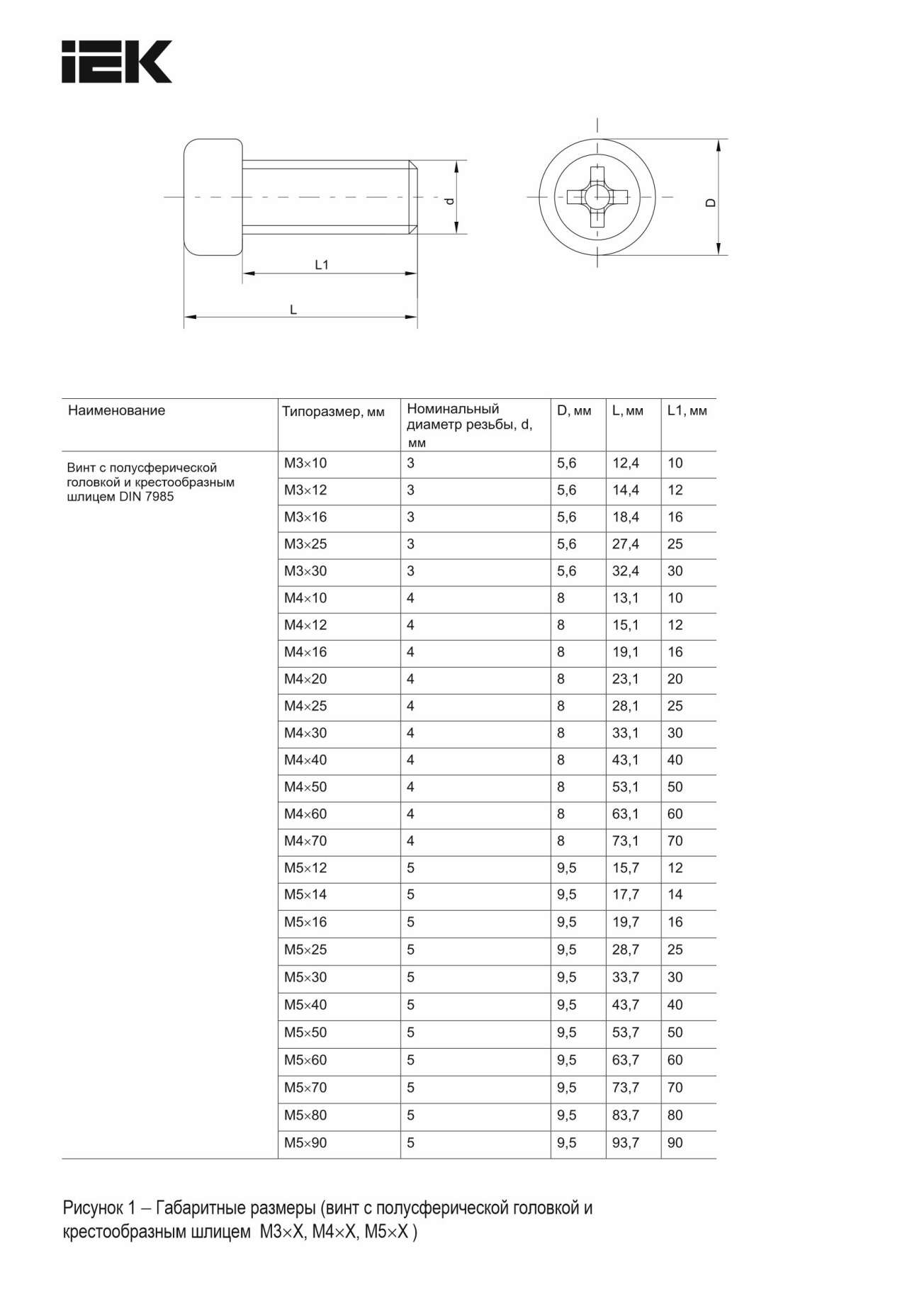 Винт с полусферической головкой и крестообразным шлицем DIN 7985 М4х60 INOX IEK