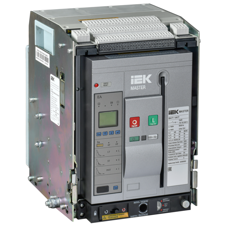 Воздушный автоматический выключатель переменного тока ВА77 выдвижного исполнения 3 полюса типоразмер A 65кА 1600А EA с набором аксессуаров: мотор привод катушка включения катушка отключения MASTER IEK