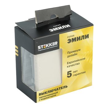 Выключатель 1-клавишный c индикатором (механизм), STEKKER, 250В, 10А, серия Эмили, RSW10-5101-08, кашемир, soft touch