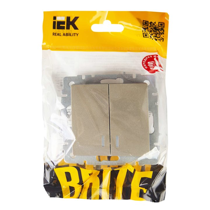 Выключатель 2-кл. СП BRITE ВС10-2-1-БрШ 10А с инд. шампань IEK BR-V20-1-10-K37