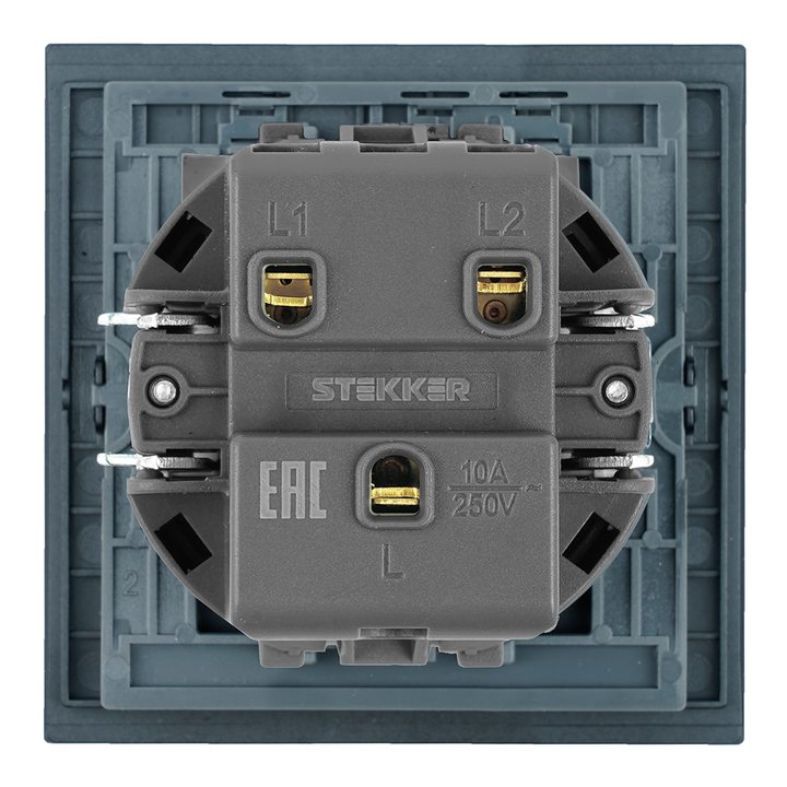 Выключатель 2-клавишный (механизм), STEKKER, 250В, 10А, серия Мия, RSW10-3104-05, черный бархат