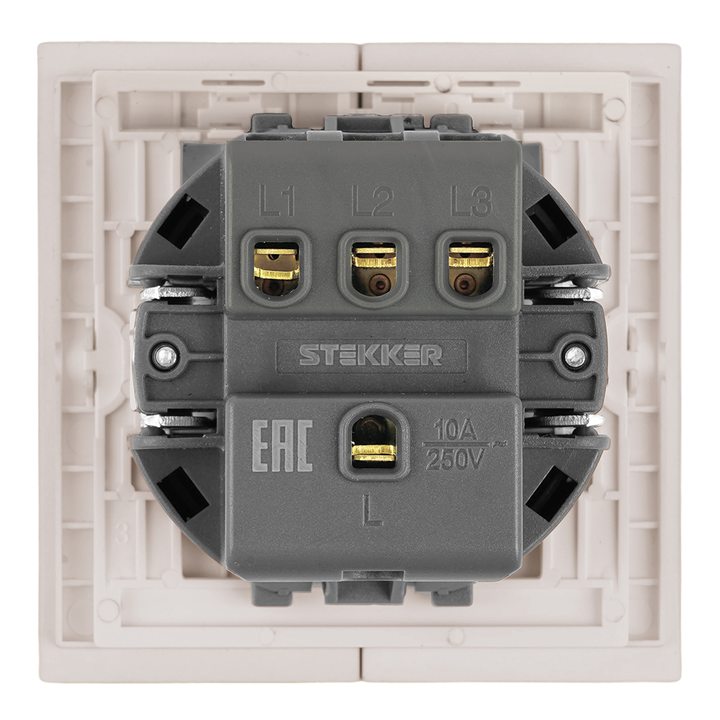 Выключатель 3-клавишный (механизм), STEKKER, 250В, 10А, серия Мия, RSW10-3108-08, пудровый жемчуг