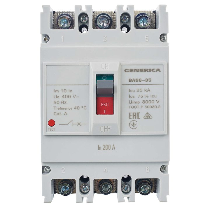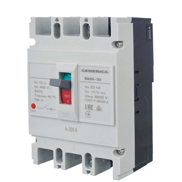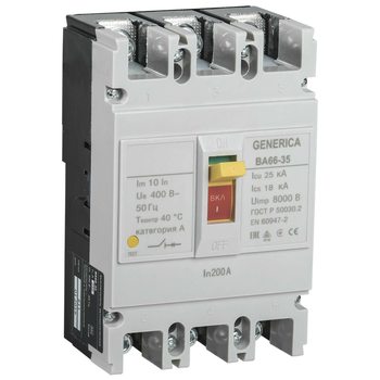 Выключатель автоматический 3п 200А 25кА ВА66-35 GENERICA SAV30-3-0200-G