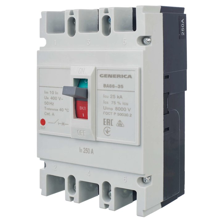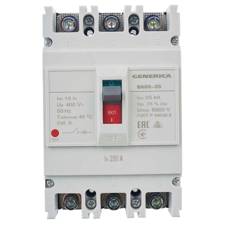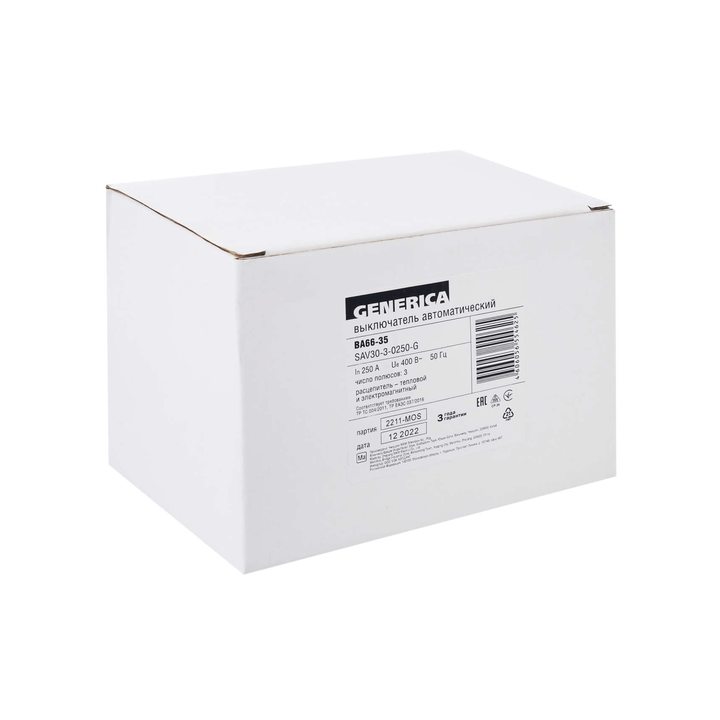 Выключатель автоматический 3п 250А 25кА ВА66-35 GENERICA SAV30-3-0250-G