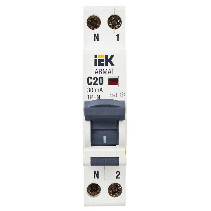 Выключатель автоматический дифференциального тока 1P+NP C20 30мА тип AC (18мм) АВДТ B06S ARMAT IEK AR-B06S-1N-C20C030