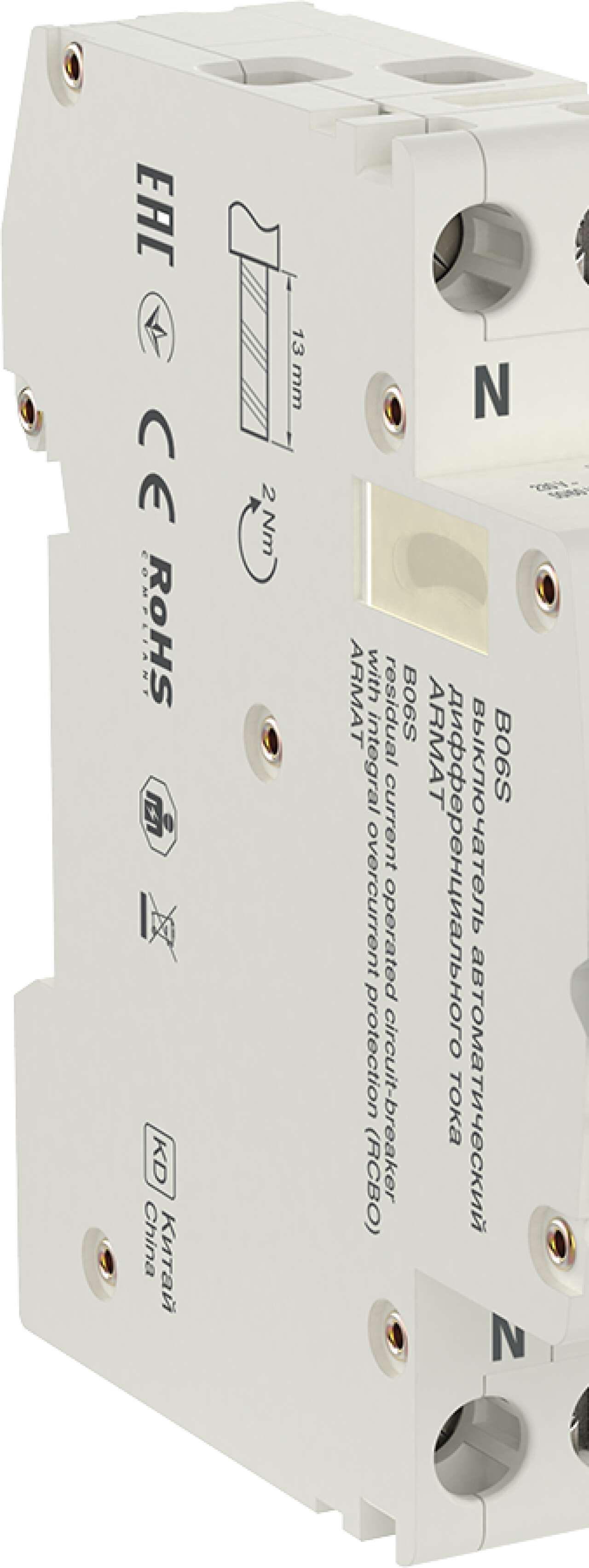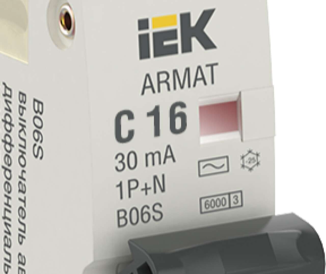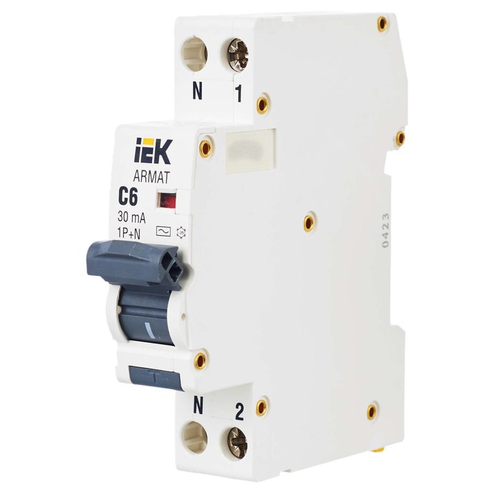 Выключатель автоматический дифференциального тока 1P+NP C6 30мА тип AC (18мм) АВДТ B06S ARMAT IEK AR-B06S-1N-C06C030