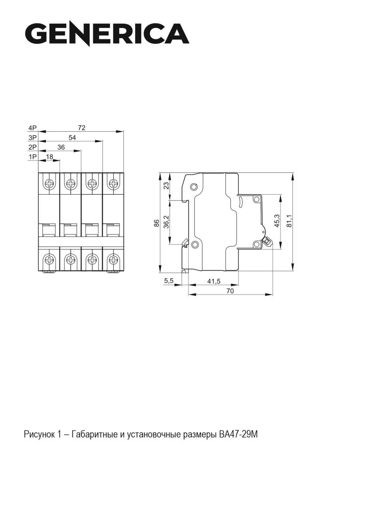 Выключатель автоматический модульный 1п C 10А 4.5кА ВА47-29М GENERICA MVA21-1-010-C-G