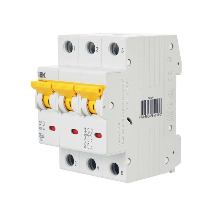 Выключатель автоматический модульный 3п C 10А 6кА ВА47-60M IEK MVA31-3-010-C