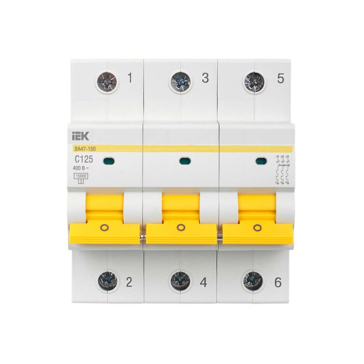 Выключатель автоматический модульный 3п C 125А 15кА ВА47-150 IEK MVA50-3-125-C