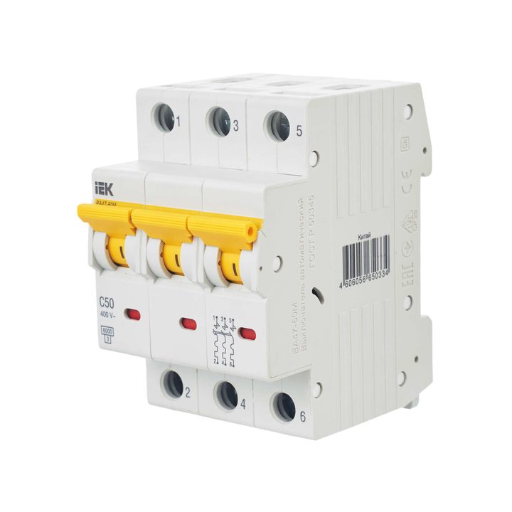 Выключатель автоматический модульный 3п C 50А 6кА ВА47-60M IEK MVA31-3-050-C