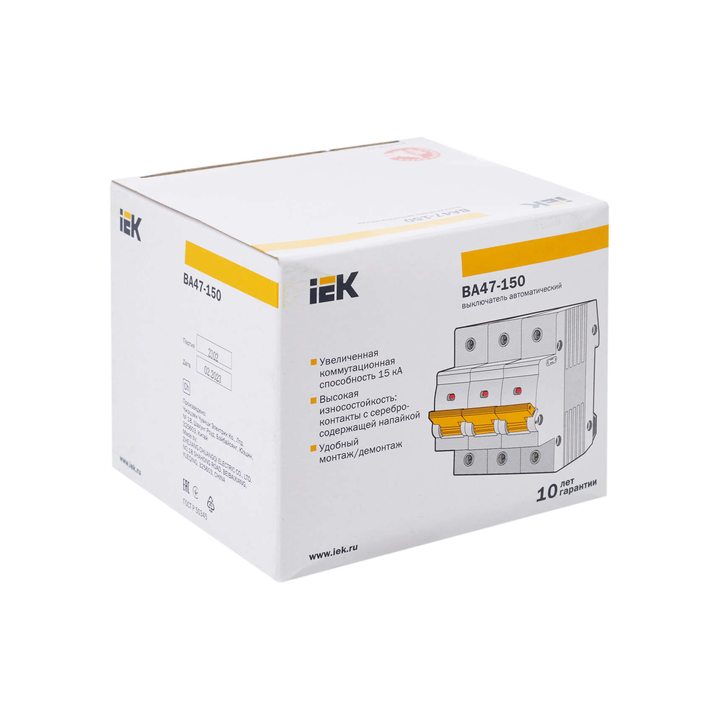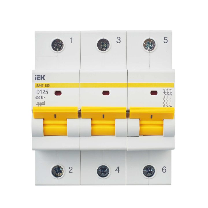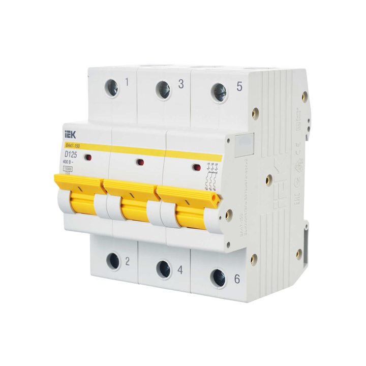 Выключатель автоматический модульный 3п D 125А 15кА ВА47-150 IEK MVA50-3-125-D