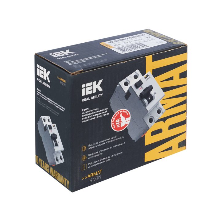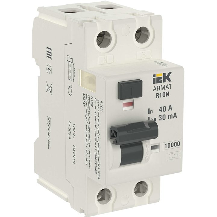 Выключатель дифференциального тока 2п 40А 30мА тип A ВДТ R10N ARMAT IEK AR-R10N-2-040A030