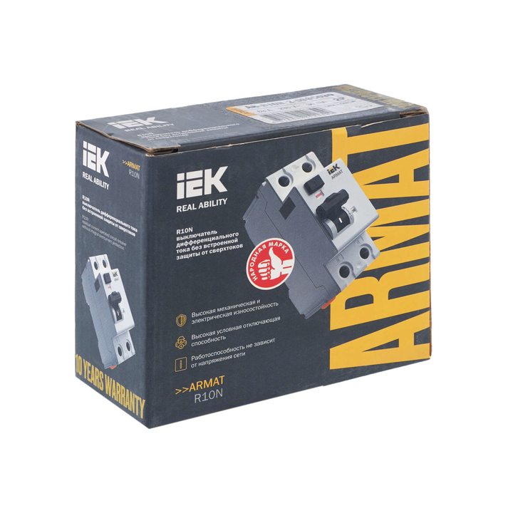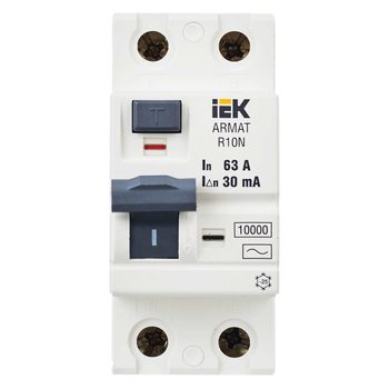 Выключатель дифференциального тока 2п 63А 30мА тип AC ВДТ R10N ARMAT IEK AR-R10N-2-063C030