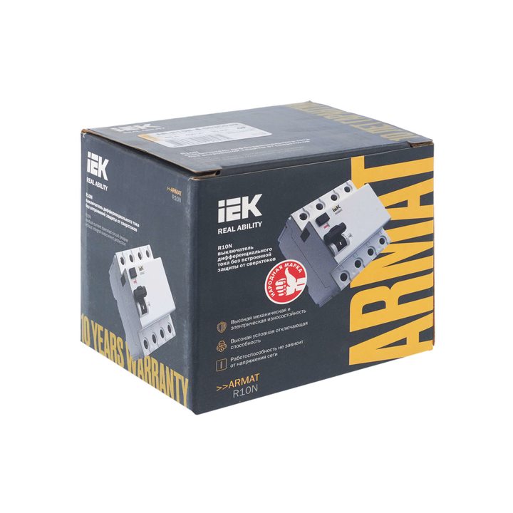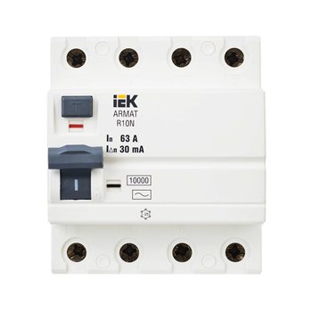 Выключатель дифференциального тока 4п 63А 30мА тип AC ВДТ R10N ARMAT IEK AR-R10N-4-063C030
