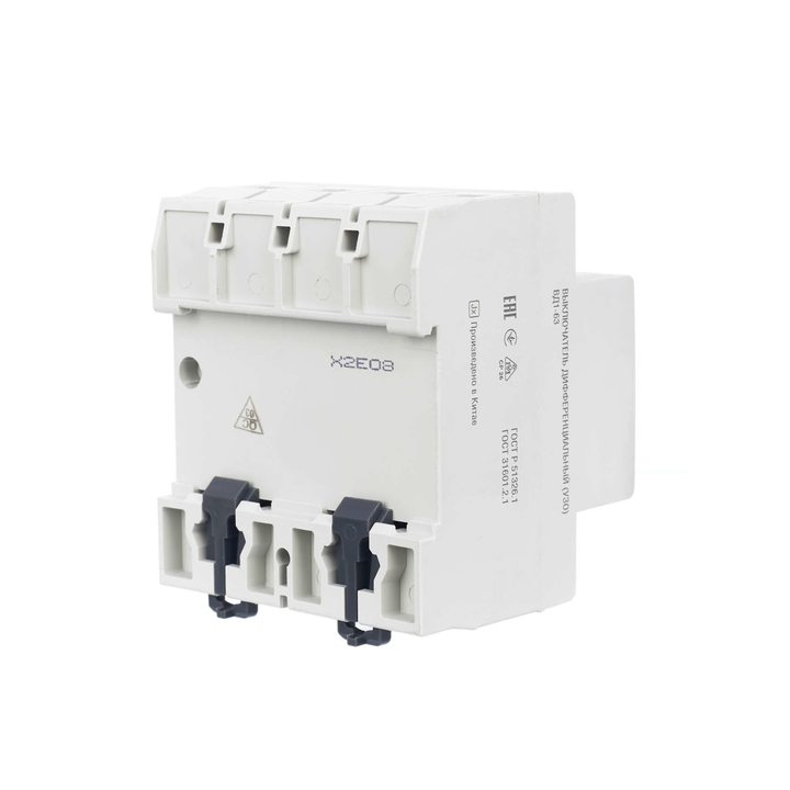 Защелка для крепления УЗО на монтажную рейку выполнена с возможностью фиксации блокирующего и свободного положений.