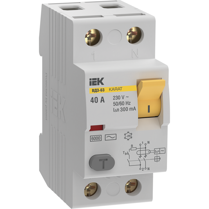 Выключатель дифференциальный (УЗО) KARAT ВД3-63 2P 40А 300мА 6кА тип AC IEK