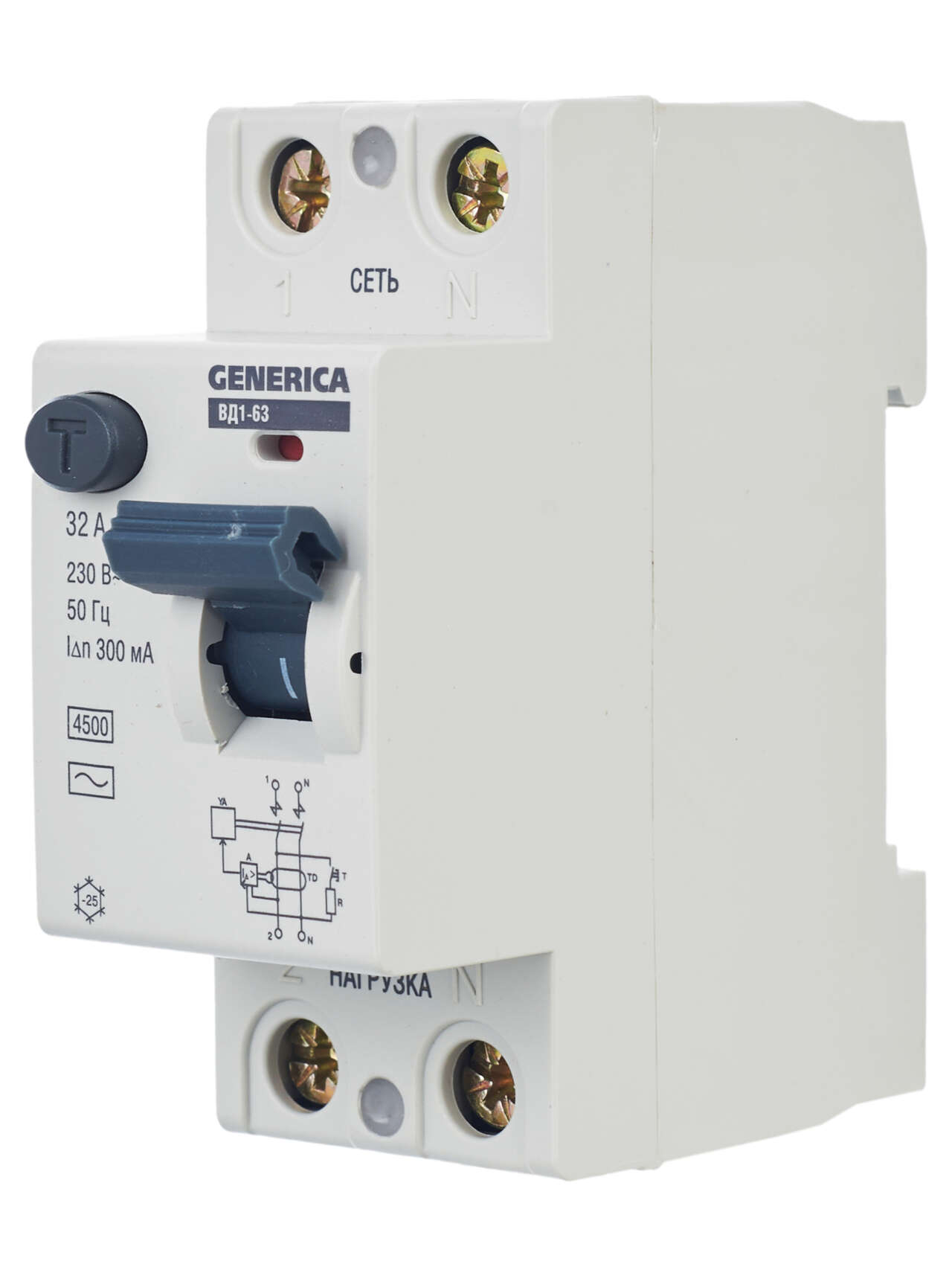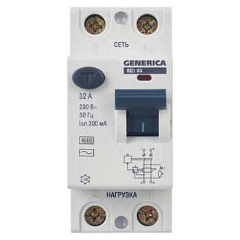 Выключатель дифференциальный (УЗО) ВД1-63 2Р 32А 300мА GENERICA