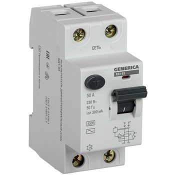 Выключатель дифференциальный (УЗО) ВД1-63 2Р 50А 300мА GENERICA