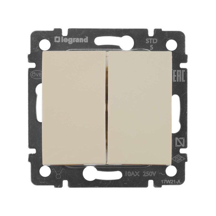 Механизм выключателя 2-кл. СП Valena 10А IP31 250В сл. кость Leg 774305