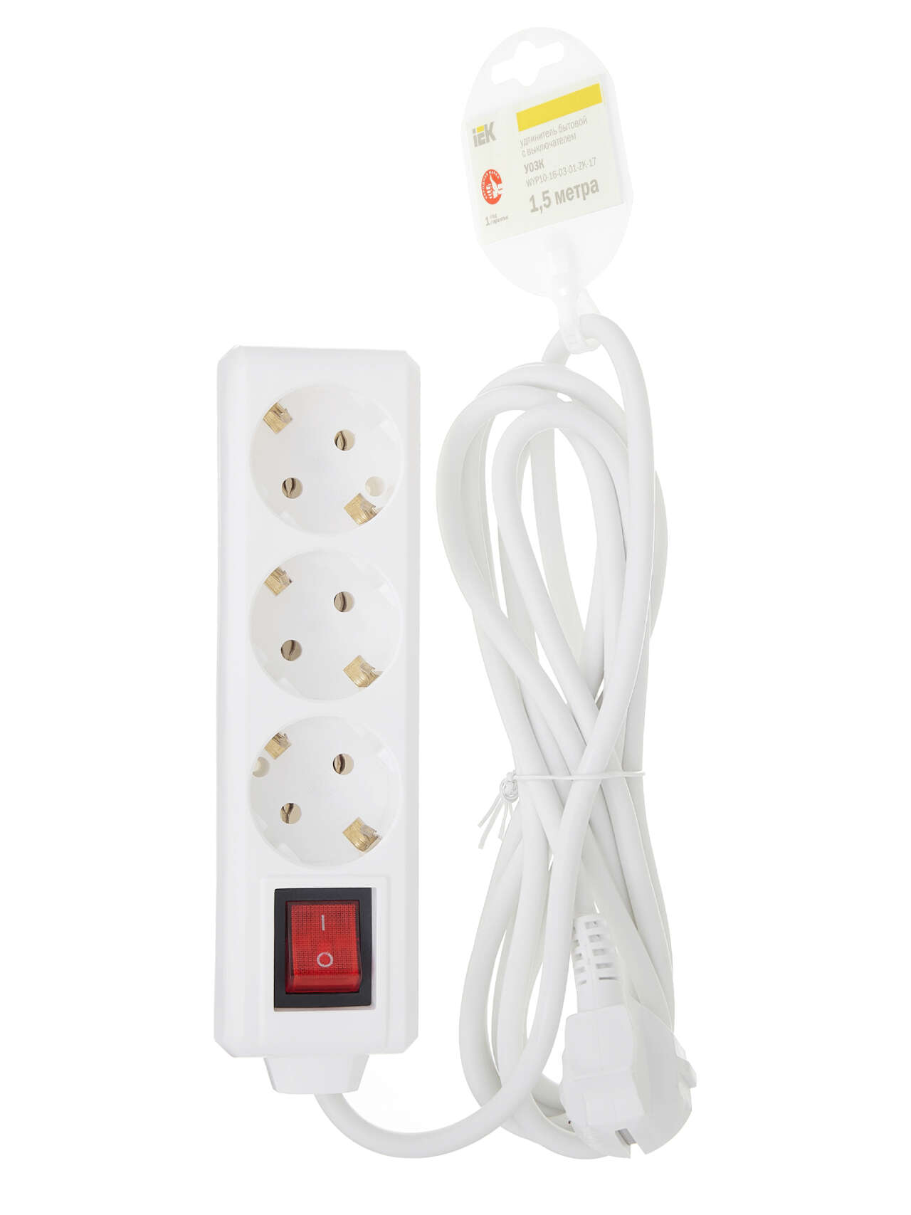 Удлинитель 3х1.5м с заземл. 16А IP20 У03К с выкл. ПВС 3х1 IEK WYP10-16-03-01-ZK-17