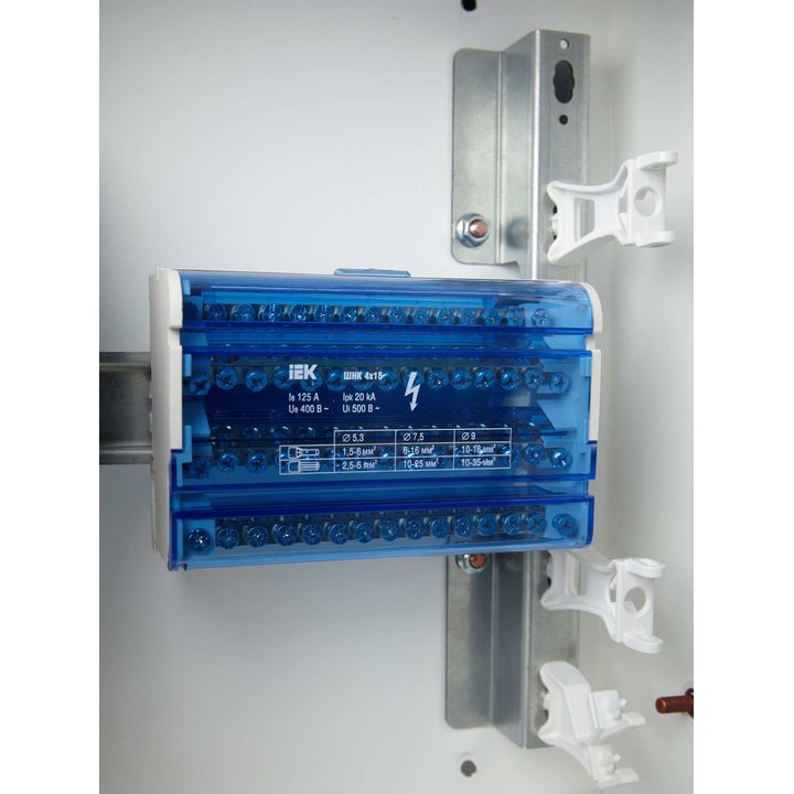 Шина на DIN-рейку в корпусе (кросс-модуль) ШНК 4х15 3L+PEN IEK YND10-4-15-125
