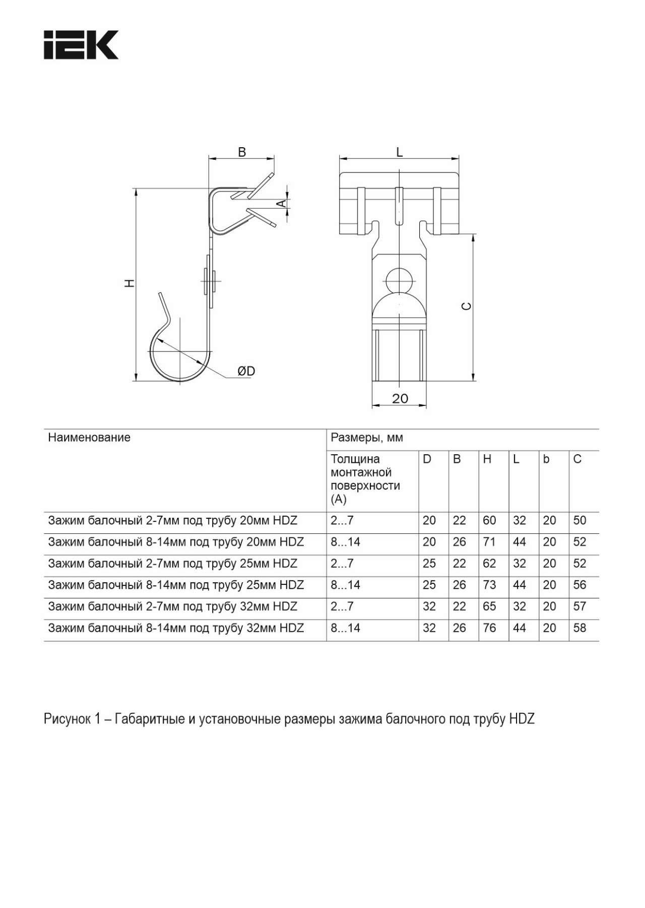 Зажим балочный 8-14мм под трубу 20мм HDZ IEK