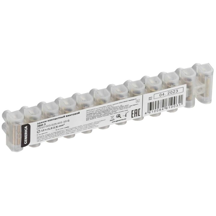 Зажим винтовой ЗВИ-3 1.0-2.5кв.мм 12пар GENERICA UZV10-003-D25-K01-10-G