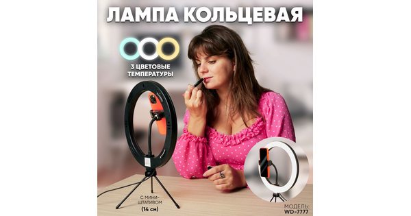 Светильник настольный, FERON WD-7777, черный, 12W, (3000-6000К), материал пластик, в комплекте USB шнур, 245*245*30мм..