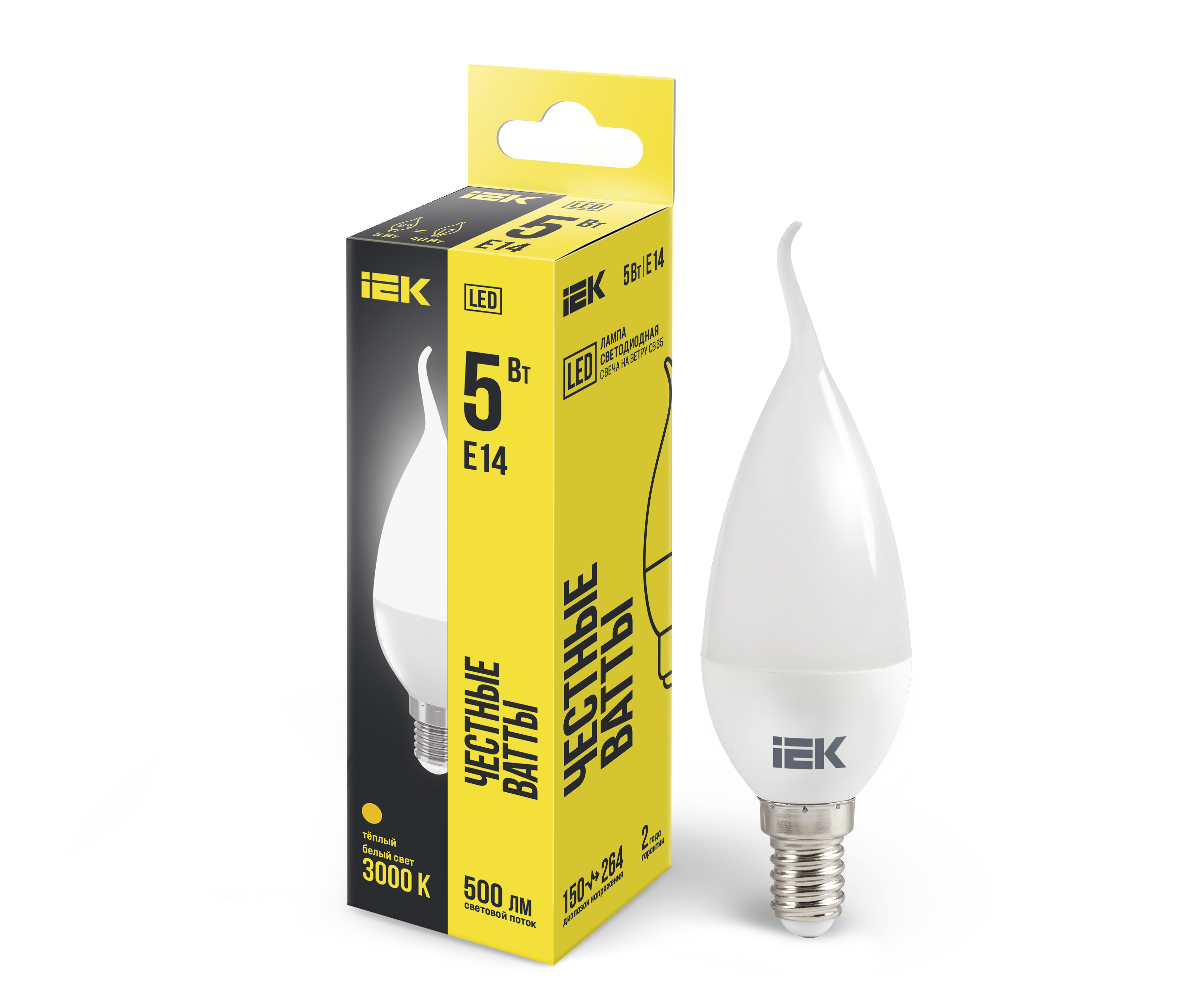 Лампа LED CB35 свеча на ветру 5Вт 230В 3000К E14 IEK предназначена для использования в осветительных приборах наружного и внутреннего освещения объект..