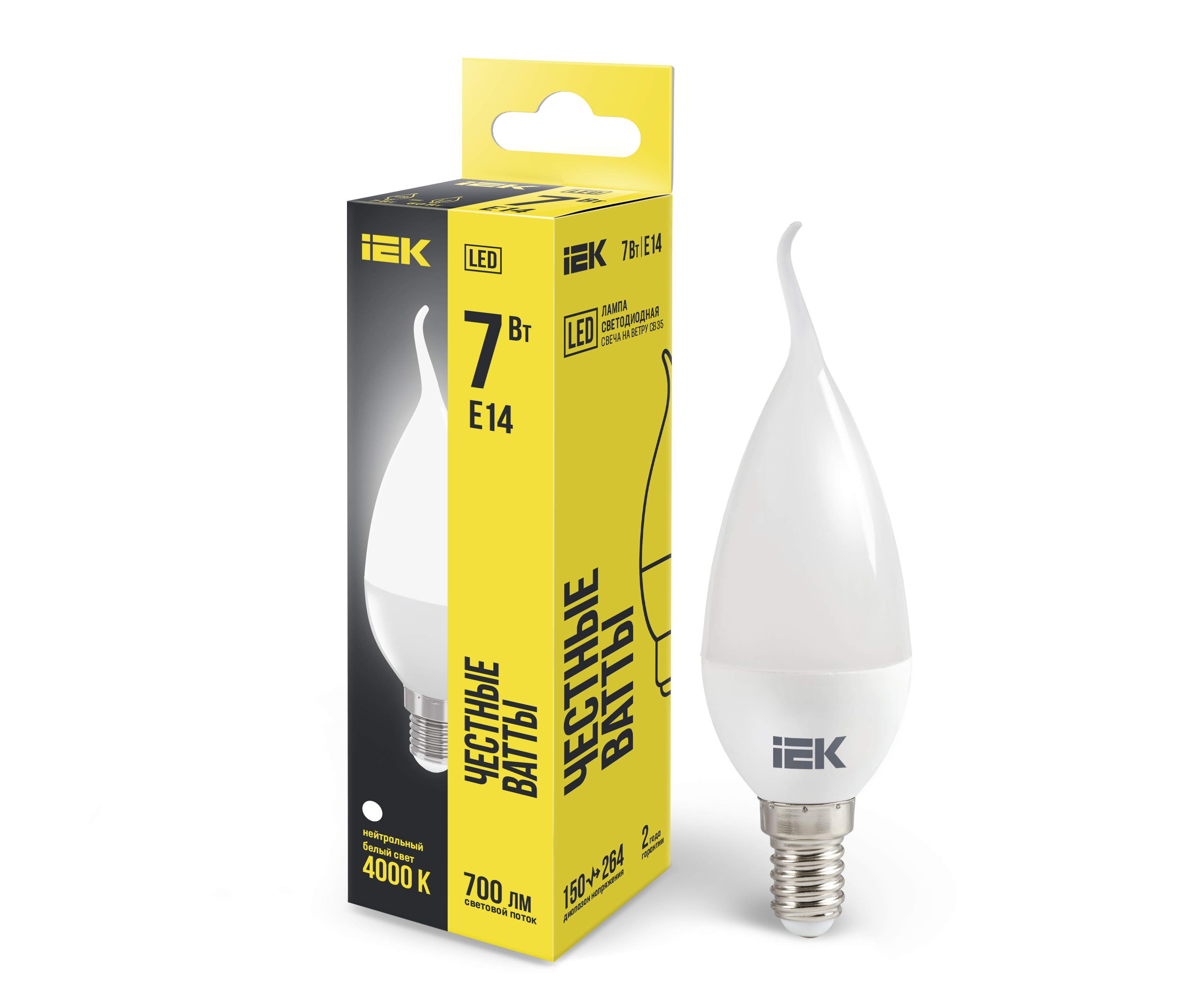 Лампа LED CB35 свеча на ветру 7Вт 230В 4000К E14 IEK предназначена для использования в осветительных приборах наружного и внутреннего освещения объект..