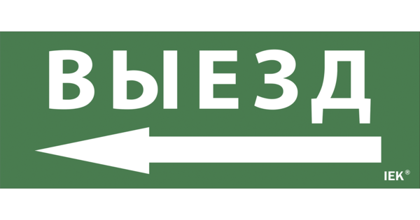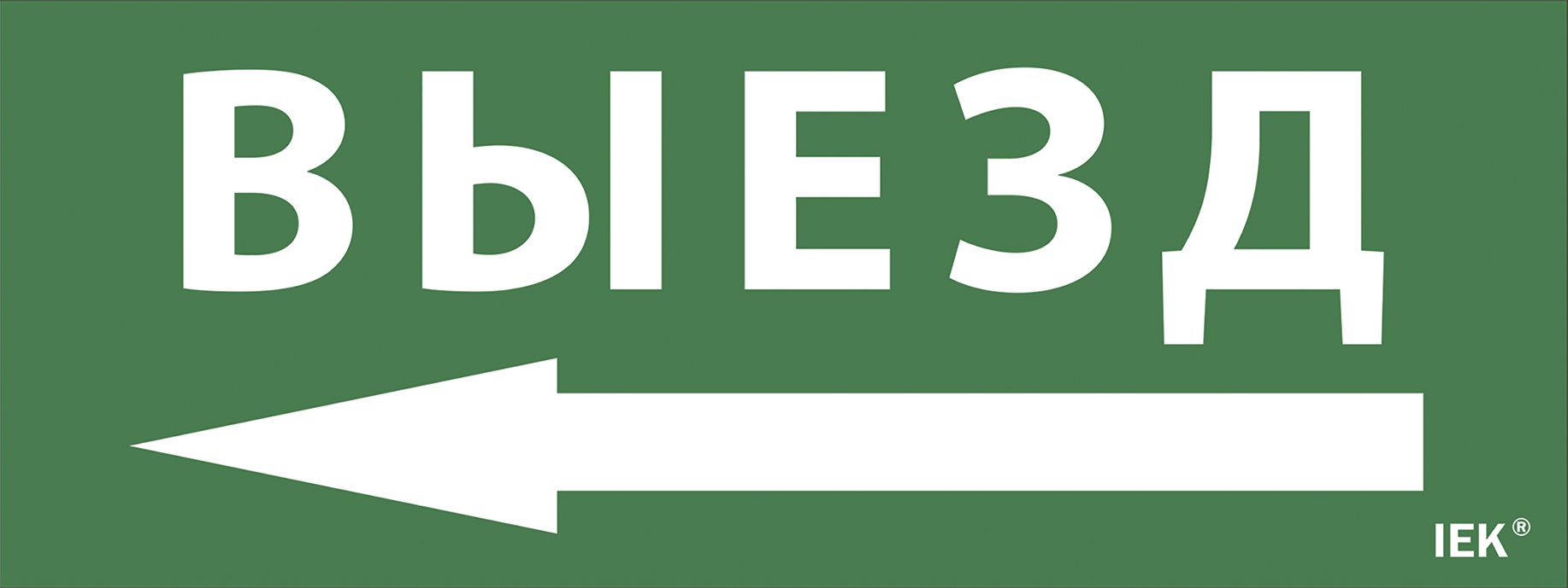 Знак безопасности "Указатель выезда" габаритные размеры 340х125 мм, фактические размеры 250х125 мм, сигнальный цвет - зеленый, контрастный цвет - белы..