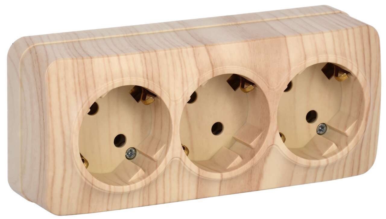 Розетка 2-м ОП 10А IP20 без заземл. сосна IONICH 1438 в Электроустановка..