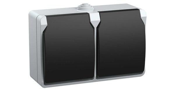 Розетка открытой установки STEKKER PST16-11-54/10-121-54 (блок с выключателем двухклавишным, однополюсным для двух цепей с общим вводом, 250В, 10А.) н..
