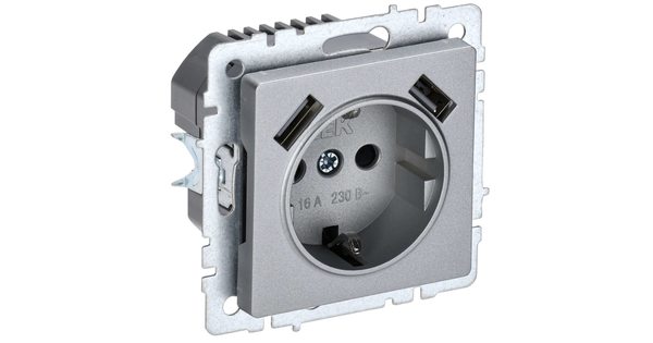 Механизм розетки 1-м СП AtlasDesign 16А IP20 без заземл. алюм. SchE ATN000341 в Электроустановка..