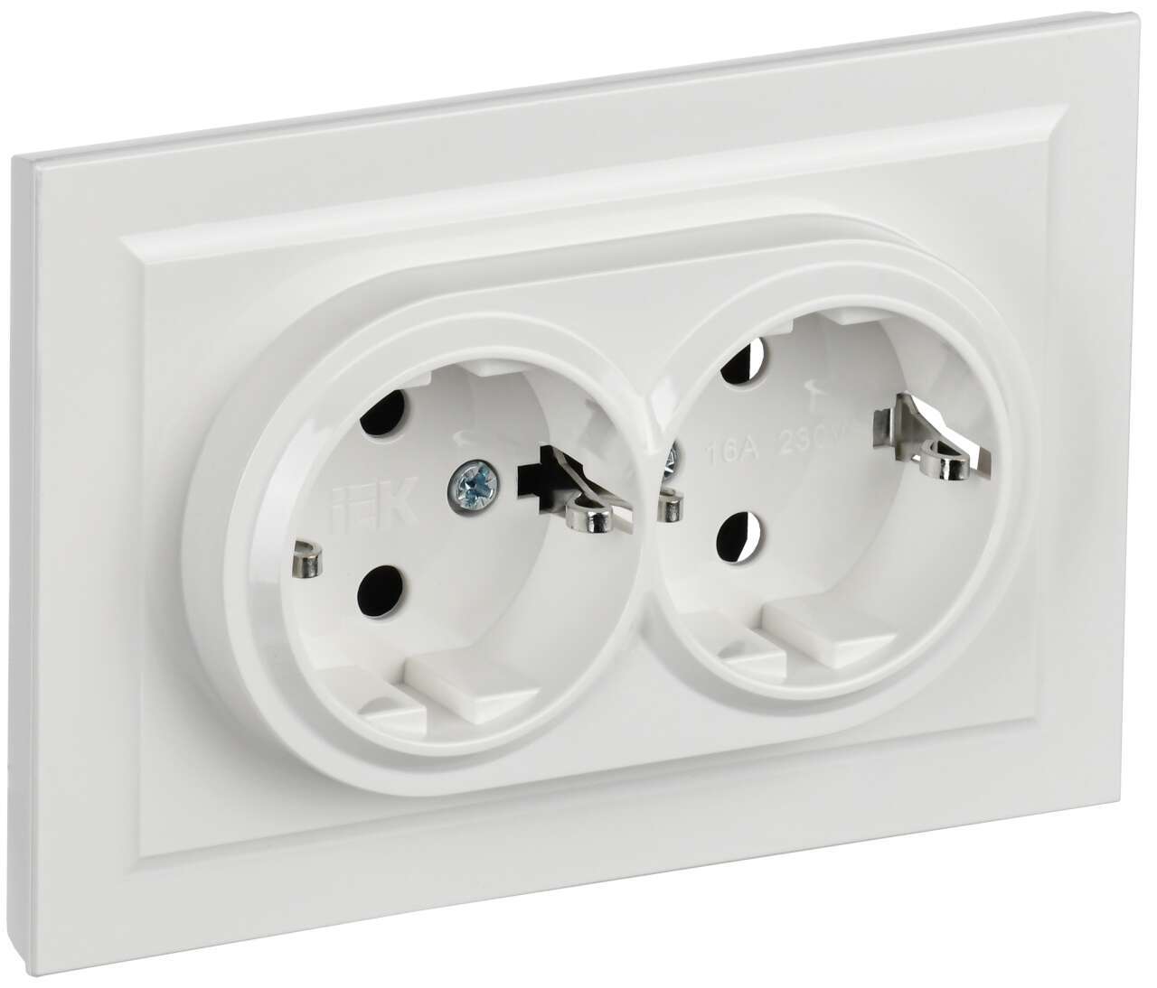 Розетка 2-м СП Хит 16А IP20 с заземл. защ. шторки бел. SchE RS16-231-B в Электроустановка..