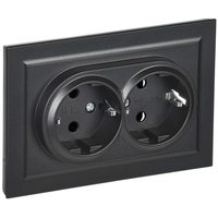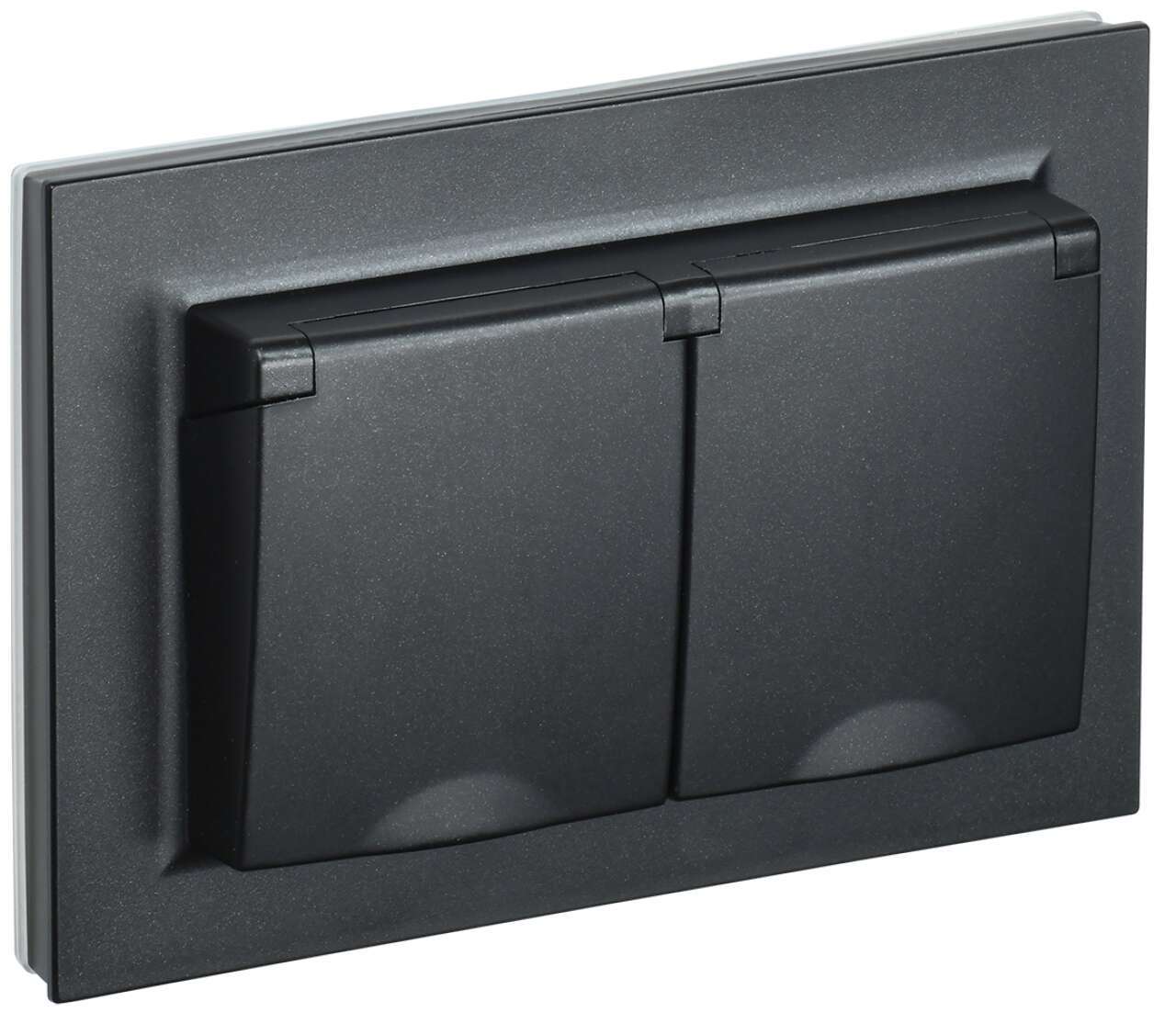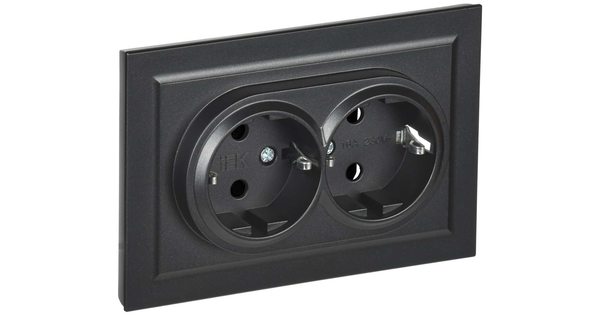 Двойная розетка с заземлением, со шторками QUTEO, применяется в зданиях, оборудованных для повышения безопасности проводкой с заземлением (с защитным ..