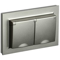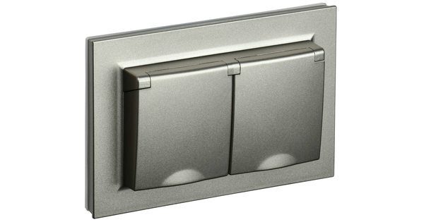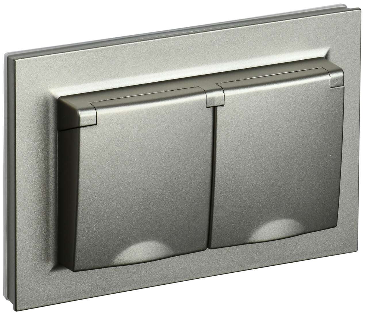 Розетка с заземлением, защитной крышкой и интегрированными защитными шторками для скрытого монтажа Inspiria, степень пылевлагозащиты IP44, цвет "Алюми..