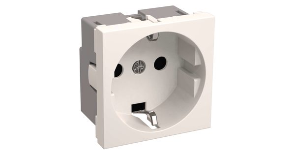 Розетка с заземлением и защитными шторками ETIKA для скрытого монтажа. Применяется в зданиях, оборудованных для повышения безопасности проводкой с заз..