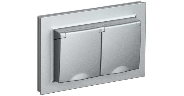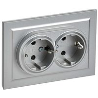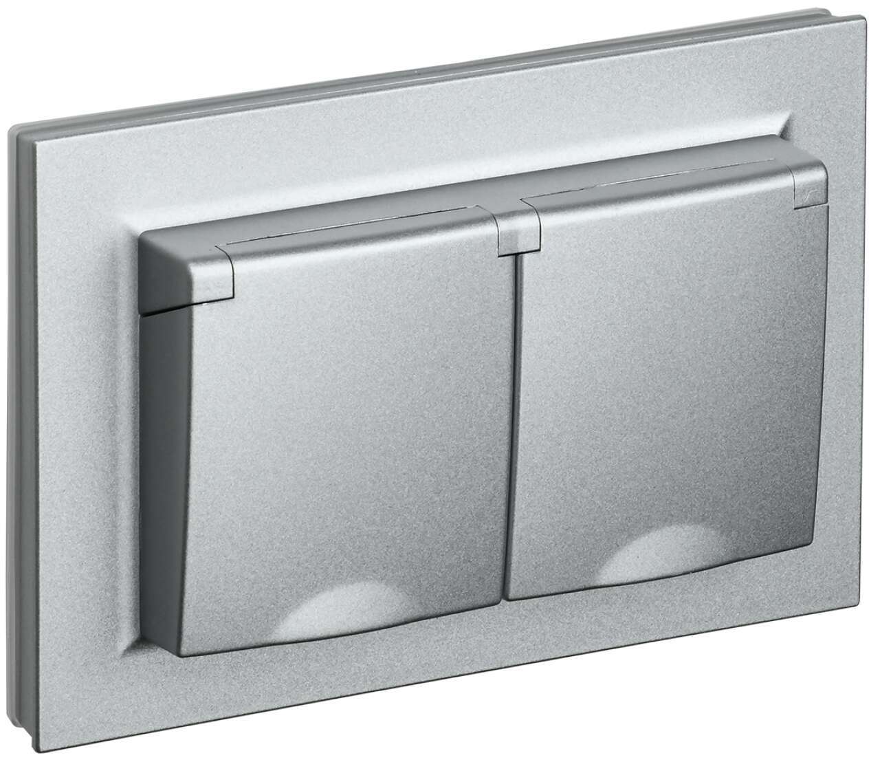 Розетка двойная с заземлением для скрытого монтажа Inspiria, цвет "Алюминий", максимальный ток 16А, напряжение ~250В, максимальная мощность 3680Вт, ви..