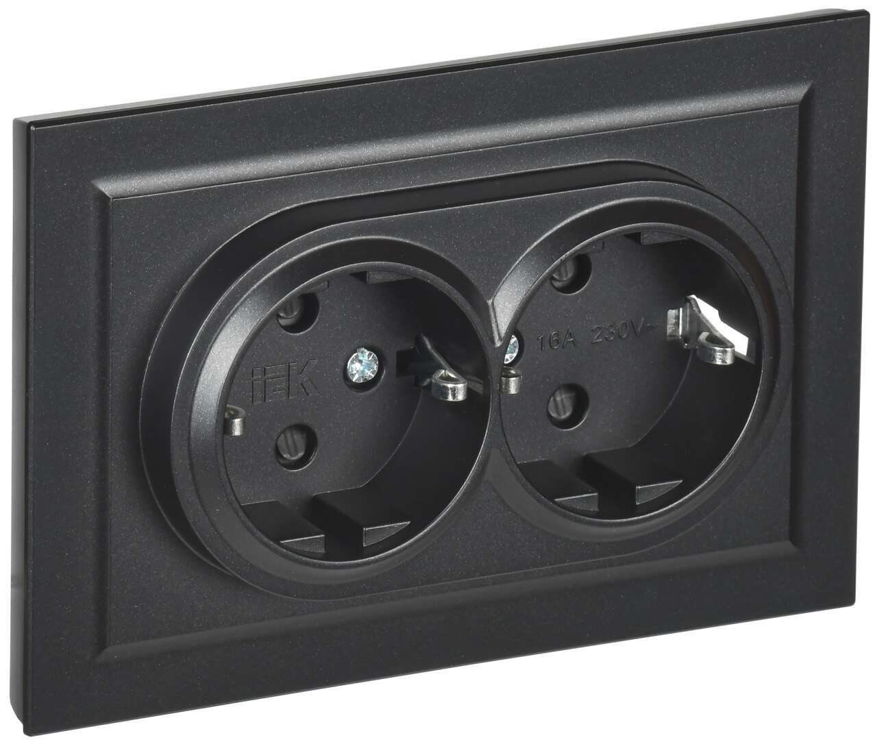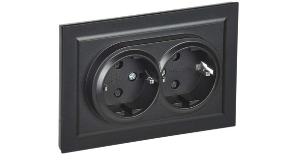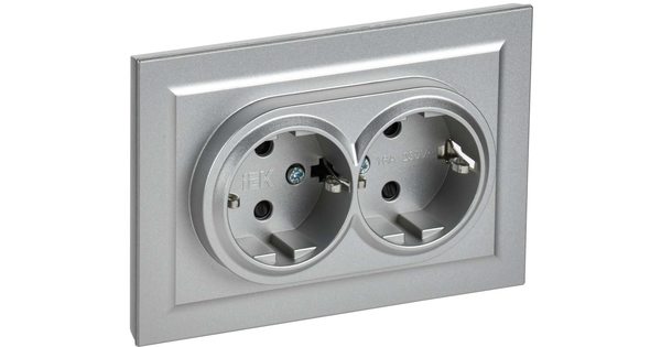 Двойная розетка с заземлением без защитных шторок QUTEO, применяется в зданиях, оборудованных для повышения безопасности проводкой с заземлением (с за..